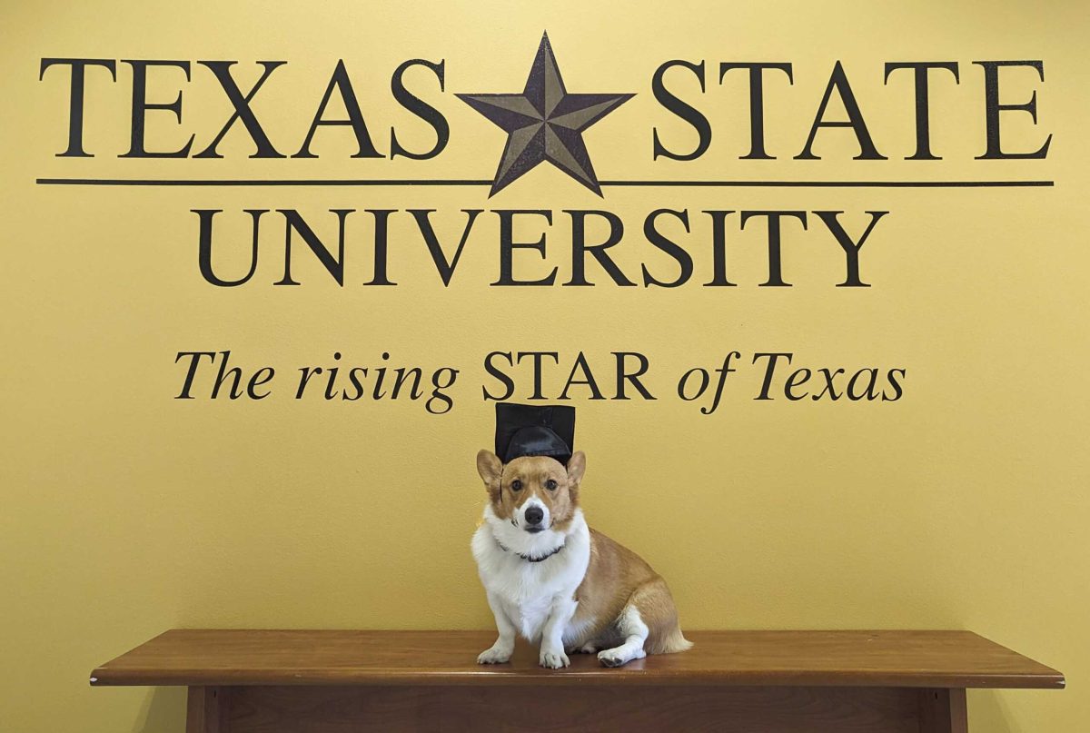 After completing Canine Good Citizen training in January 2023, Tucker was admitted to Texas State University, where he earned his “Dogtorate” in July, complete with cap and diploma. Tucker and his mom, Grant, completed 120 hours of training to become certified in animal-assisted counseling.