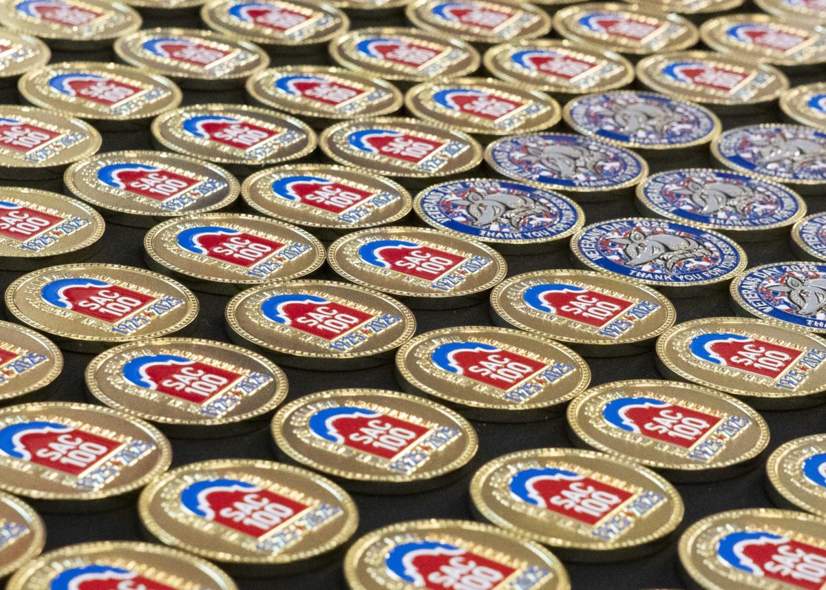 SAC President Dr. Francisco Solis, a Navy veteran, presented SAC Centennial challenge coins commemorating SAC’s commitment to honoring veteran students and fallen service members.